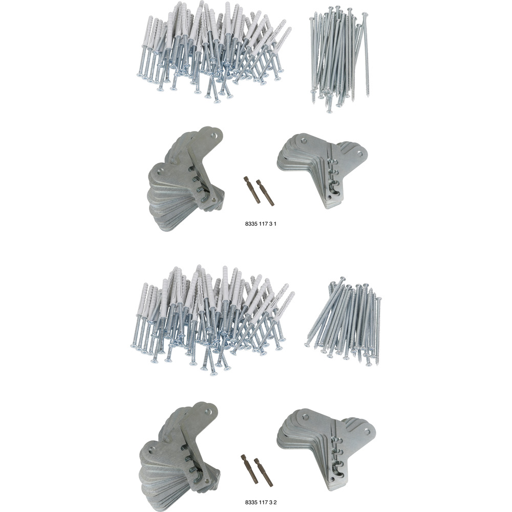 • pakkerne indeholder alle nødvendige fastgørelsesmidler til de enkelte, anførte underlag