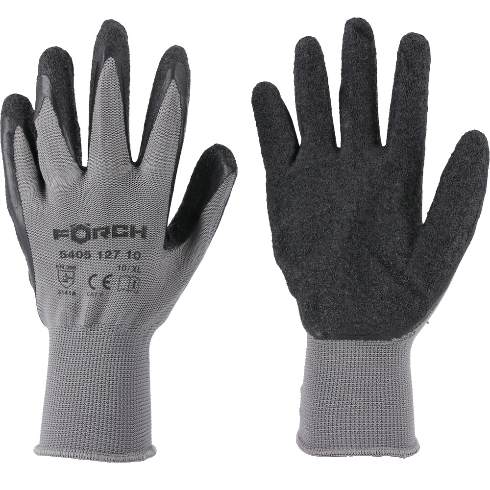 • håndflade og fingre med riflet latex-belægning