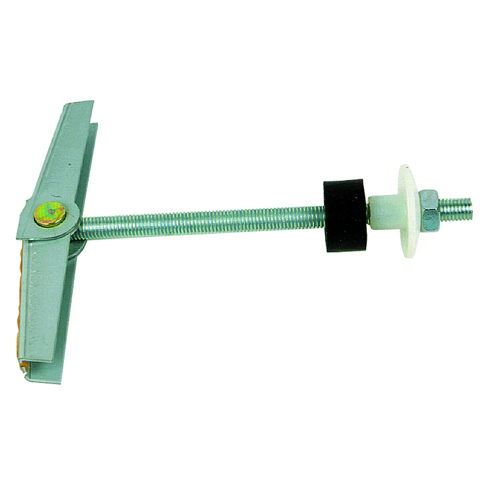 • formonteret med uddrejningssikker gevindstang, gummiprop til udfyldning af borhul og centrering af gevindstang, nylon-bøsning og sekskantmøtrik M10