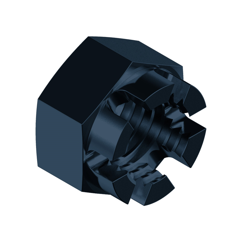 Kronenmøtrikker DIN 935-10, blankt stål