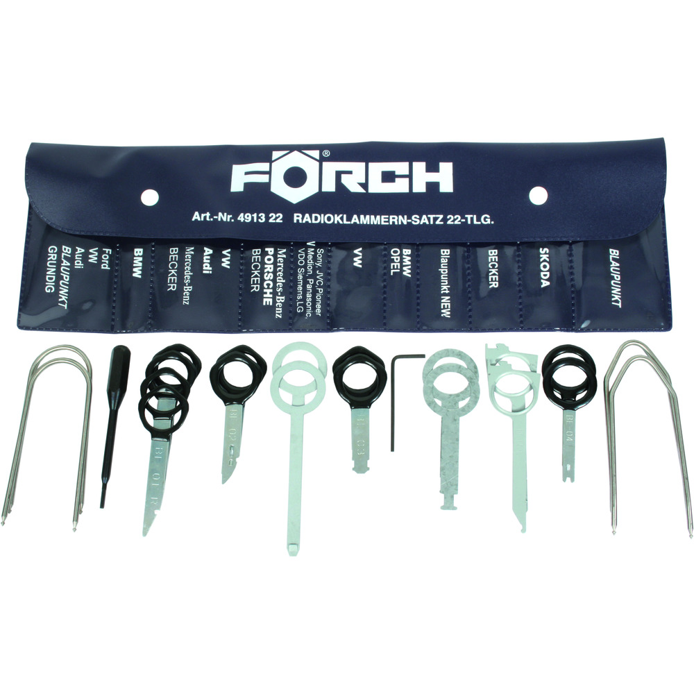 • demonteringsværktøj til de nyeste Blaupunktradioer samt til Sony-, JVC-, Pioneer-, Medion-, Panasonic-, VDO Siemens- og LG-radioer