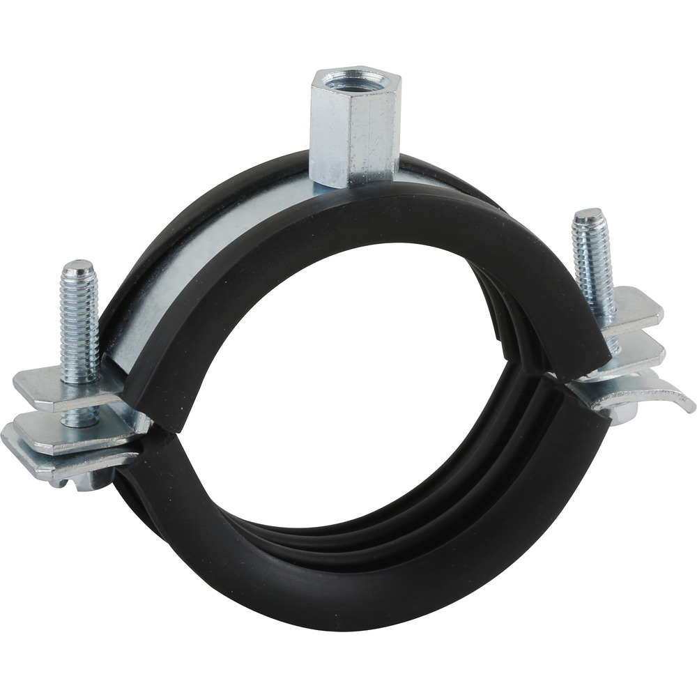 Stabil rørbøjle i to dele til højere belastningskrav indenfor bygningsteknik og rørbyg brandtestet efter DIN 4102; støjbeskyttelse efter DIN 4109