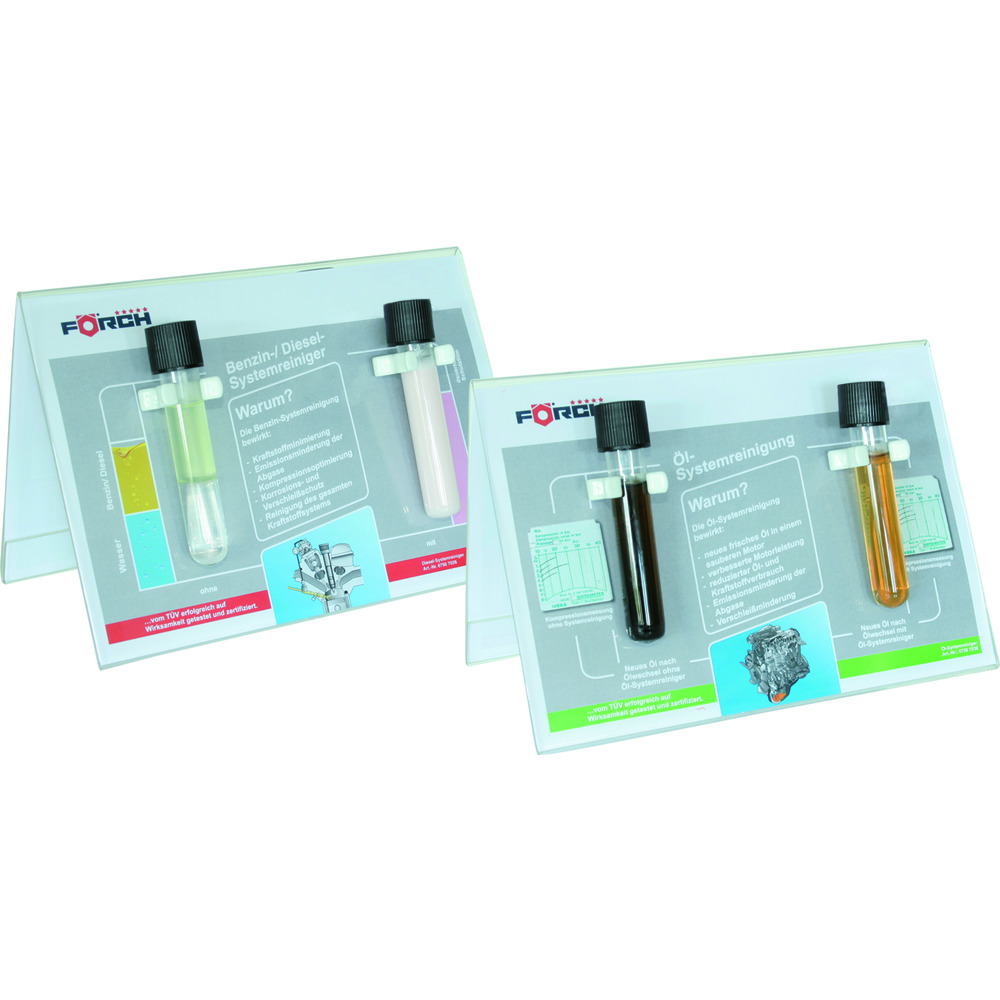 • dobbeltsidet stand med prøver og informationer om illustrationen af additiv-virkningen