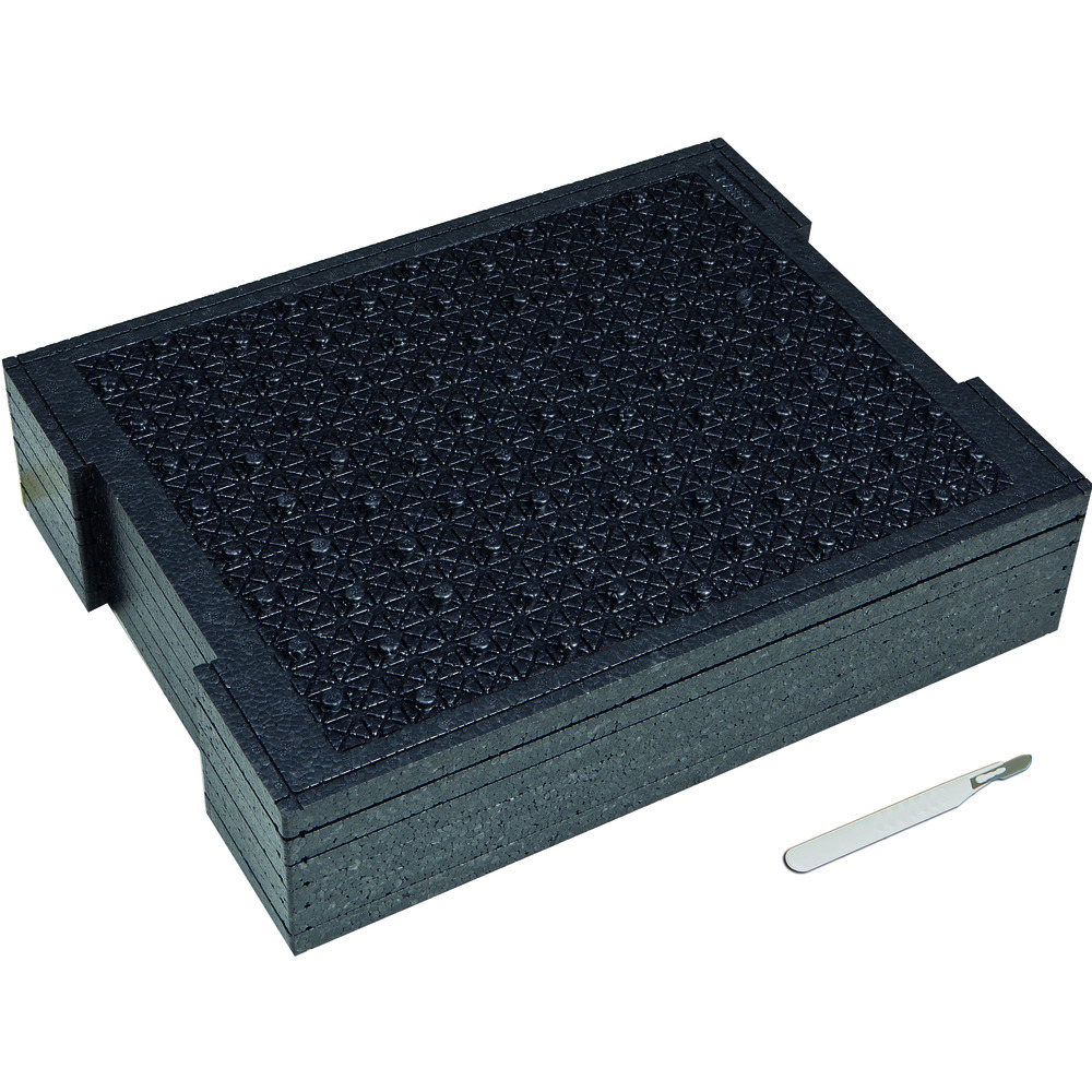 • består af 4 EPP-plader med nopper og 15 mm tykkelse til individuel udskæring